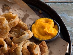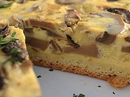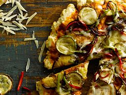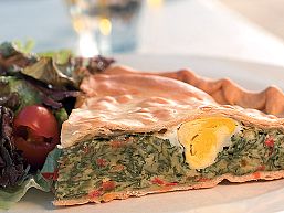 Ensalada de durazno, rúcula, escarola y jamón crudo